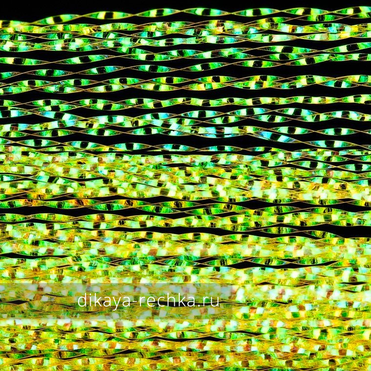 Люрекс крученый Kosadaka – синтетический крученый люрекс, который подойдет для создания стримеров, формирования крыльев у мушек, хвостиков, ножек и других целей. Материал легкий, подвижный в воде, и очень прочный, что хорошо сказывается на долговечности мушки.