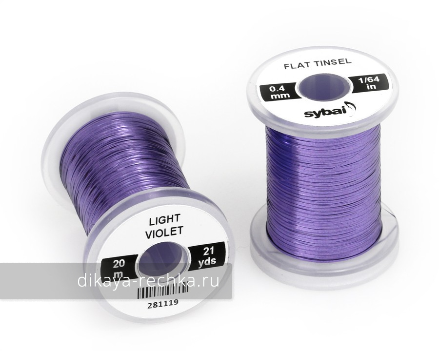 Sybai Flat Tinsel - плоский люрекс от небезызвестной фирмы Sybai подойдет для вязания самых разнообразных мух.  Особый блеск делает муху более привлекательной для рыбы и провоцирует ее на поклевку. Плоская структура хороша для сегментации, формирования тела, хвостика, ребер, обмотки мушки,  и др.