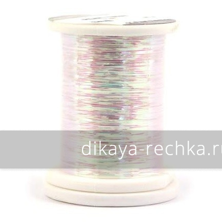 Плоский полупрозрачный люрекс с опаловым отливом, дающим переливающийся эффект в зависимости от угла падения света.