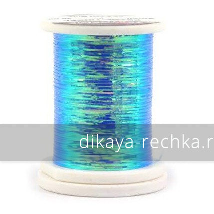 Плоский полупрозрачный люрекс с опаловым отливом, дающим переливающийся эффект в зависимости от угла падения света.