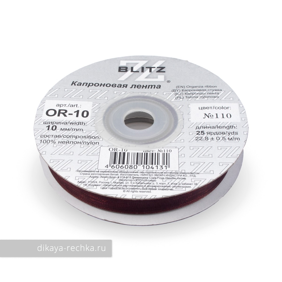 Органза BLITZ 10мм, 22,8м, №110 темно-коричневый