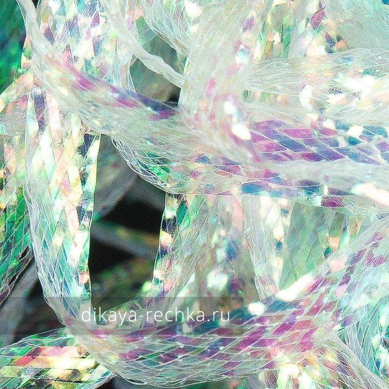 Полоски с ярким жемчужным блеском для вязания мушек-имитаций бормаша (бокоплава), а также свободноживущих ручейников, веснянок и других насекомых, имеющих хитиновый покров. Особенность данной пленки в том, что она не монолитна, а имеет плетёную структуру, что придаёт мушкам дополнительный рельеф и создает интересные для рыбы блики в воде. При выборе учтите, что этот материал малорастяжим.