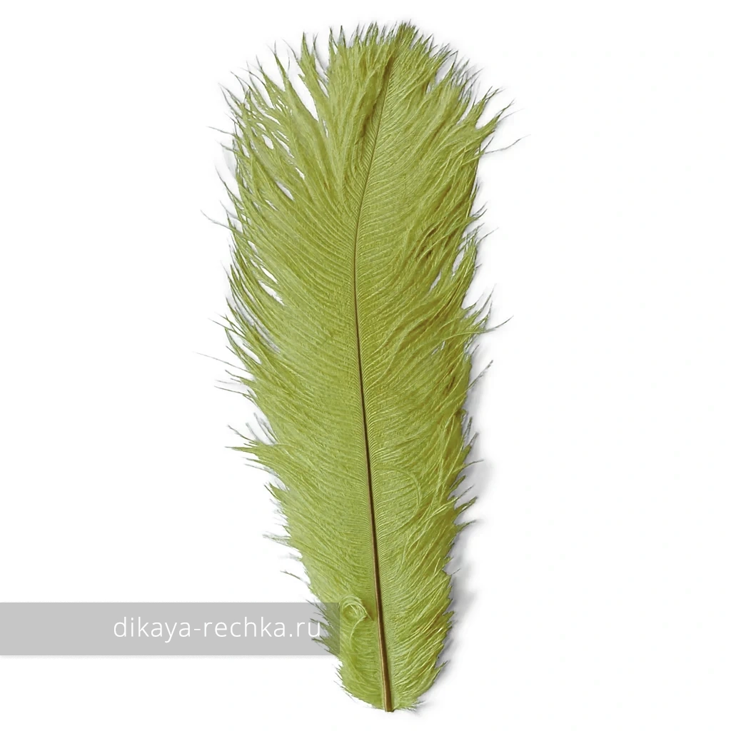 Отрезок страусиного пера с длинными густыми бородками. Бородки пера страуса широко используются в муховязании для изготовления тел различных мушек, а также хвостиков, ножек и элементов крыла. Следует учитывать, что эти перья не очень прочные, поэтому перед навиванием тела мушки две-три страусиные бородки обязательно скручиваются с монтажной нитью.