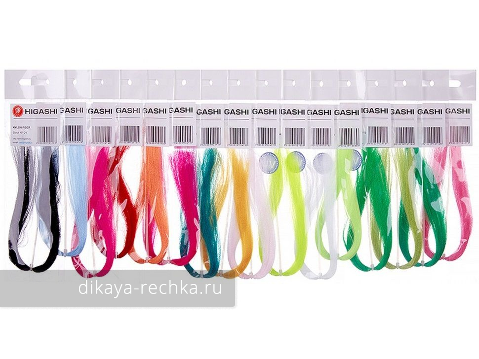 Higashi Nylon Fiber – очень тонкие и мягкие синтетические волокна, которая в совокупности с Flash (блестящим) эффектом лучше отражают свет. В линейке есть флюоресцентные цвета, которые хорошо работают при ловле глубинных стайных рыб. Из этого волокна можно сделать подслой тела мушки, а можно и мягкий подвижный хвост.