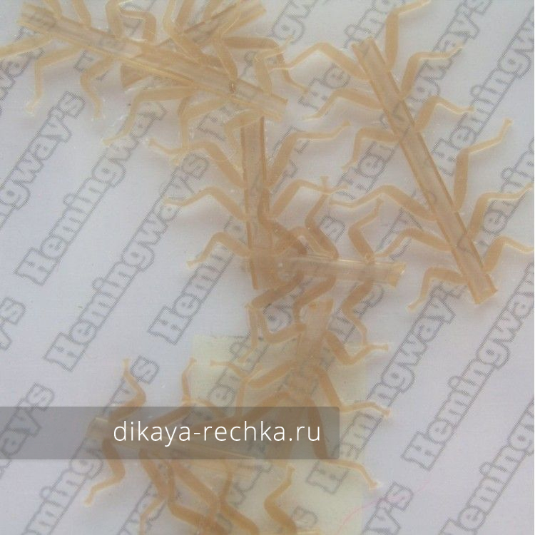 Очень реалистичная имитация ножек личинки подёнки, сделанная из силикона. Закреплённые на мушке, ножки двигаются в воде, как ножки настоящего насекомого. Несмотря на свою мягкость, ножки очень прочные и выдерживают много поклёвок.