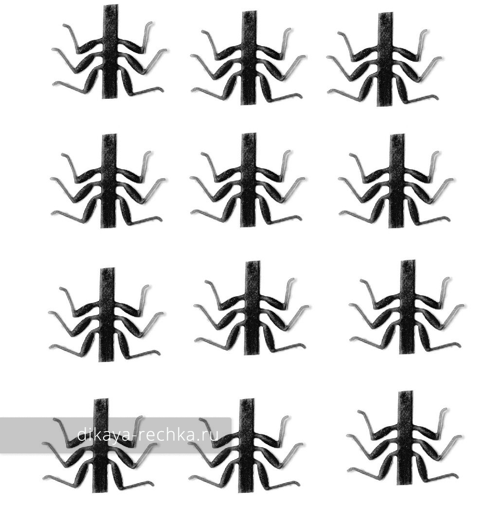 Закреплённые на мушке, ножки двигаются в воде, как ножки настоящего насекомого.