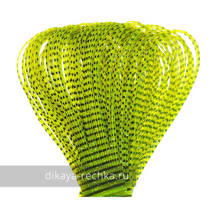 Тонкие полоски из силикона для имитации ножек личинок насекомых, например, веснянок, крупных ручейников и кузнечиков. Мягкий силиконовый материал очень реалистично колышется в воде, двигаясь, как ножки настоящего насекомого. Для большей реалистичности на материал нанесены контрастные полосы чёрного цвета.