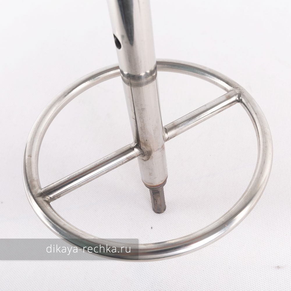 Адаптер под шуруповерт с кругом, страхующим шнек от падения в лунку. Изготовлен из нержавеющей стали в виде цельной конструкции без подвижных элементов - втулок и подшипников.
