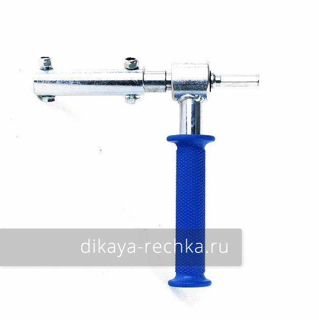Адаптер для сверления льда с помощью шуруповёрта. Шестигранный хвостовик, вставляемый в патрон дрели, препятствует проворачиванию адаптера при значительных нагрузках. Адаптер снабжён вращающейся на подшипнике рукоятью, с помощью которой бур удерживается левой рукой при сверлении. Нижняя трубка надевается на ось шнека и фиксируется болтом.