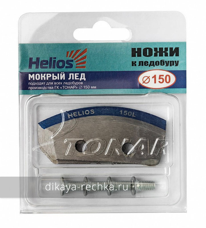 Ножи для ледобура HELIOS HS-110 (полукруглые) - комплект запасных ножей для мокрого льда, которые подходят ко всем ледобурам левого вращения серий ТОРНАДО и ТОНАР диаметром 150 мм. Полукруглая форма режущей кромки существенно снижает усилие бурения, что особенно актуально, когда толщина льда превышает 40 см. Благодаря доводке кромки лезвий на высокотехнологичном итальянском оборудовании и обработке их специальным составом острота ножей сохраняется дольше. Поставляются в комплекте с крепёжными винтами.