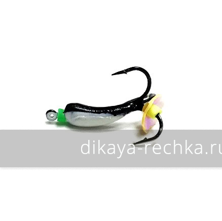 Мормышка вольфр. Золотой Плес Чертик-банан 3х10мм с петлей черно-фосфорный 0,9 гр