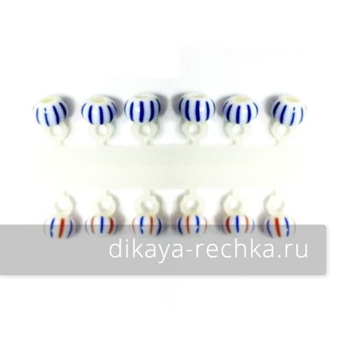Микро-Бис Шар 3,1 мм Бело-синий + Бело-красно-синий арбуз тип подвески короткая ( 12 штук)
