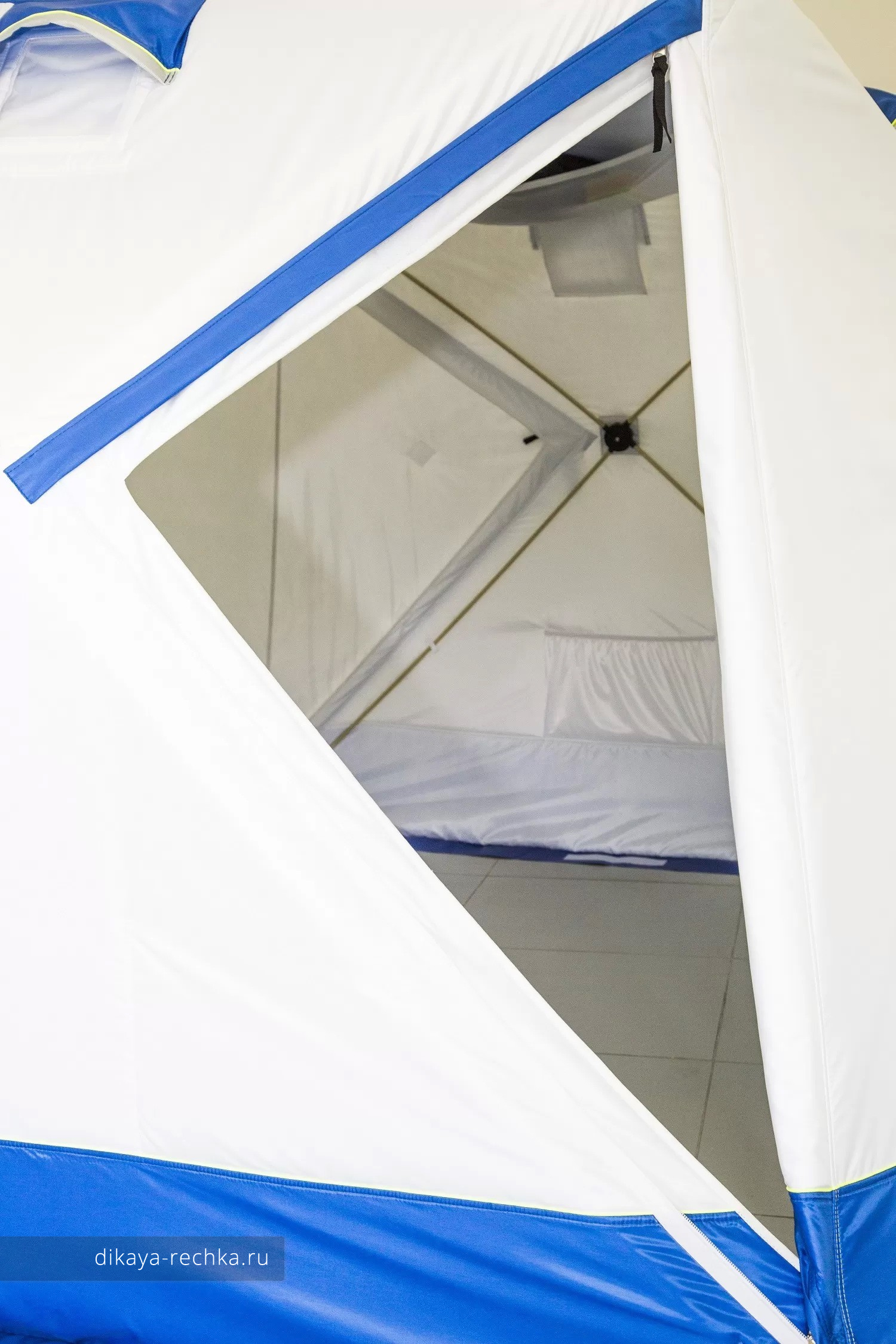 Палатка имеет два входа с двойной независимой молнией со снегозащитными планками и дополнительной внутренней планкой. Для вентиляции и вывода отопительных труб можно использовать любое из четырех прозрачных окон, крепящихся на велкро-ленте, а два вентиляционных клапана обеспечивают постоянный приток свежего воздуха. Двойная внутренняя юбка имеет ответные точки для крепления теплого пола (приобретается отдельно), а широкая наружная юбка при необходимости может присыпаться снегом, защищая от поддувания снизу. Для хранения рыболовного скарба предусмотрены две сетчатые полки под потолком и четыре вместительных боковых кармана.