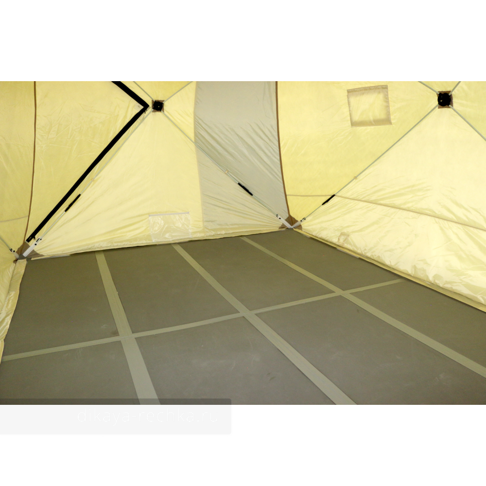 Материал ЭВА повышенной прочности имеет одностороннюю уплотненную поверхность с нескользящим покрытием. Стыки полов выполнены особым образом из эластичного, не дубеющего на морозе ПВХ и не имеют мостиков холода. Упругие свойства ЭВА позволяют ему восстанавливать свою форму после длительного давления ножками рыболовной мебели и другими предметами.