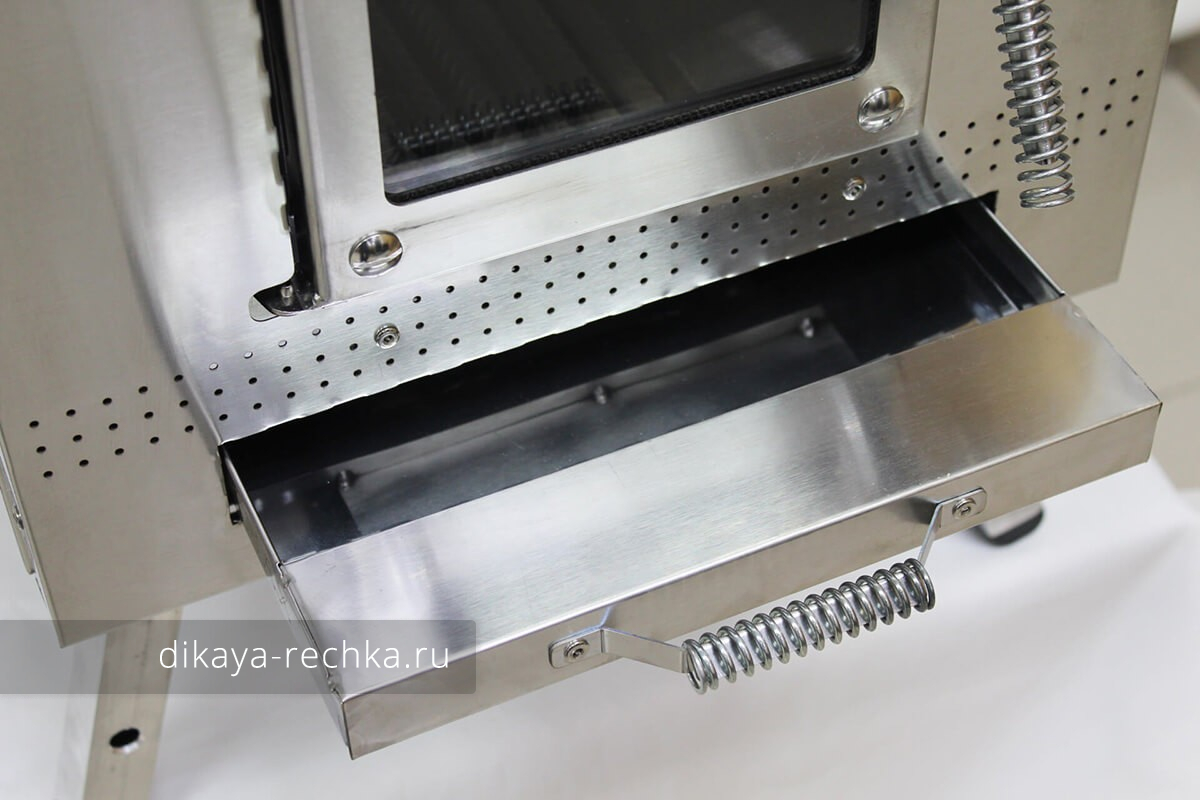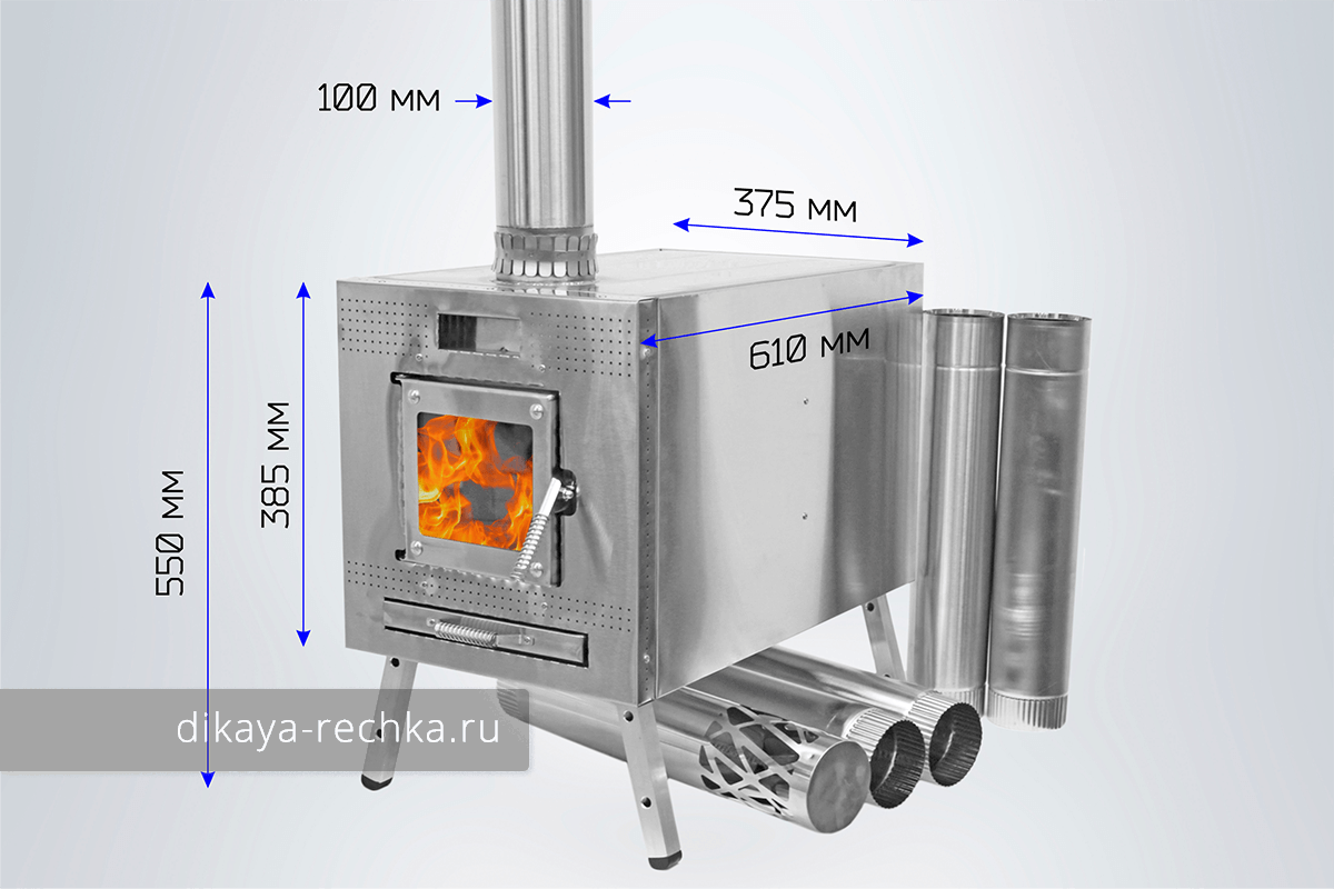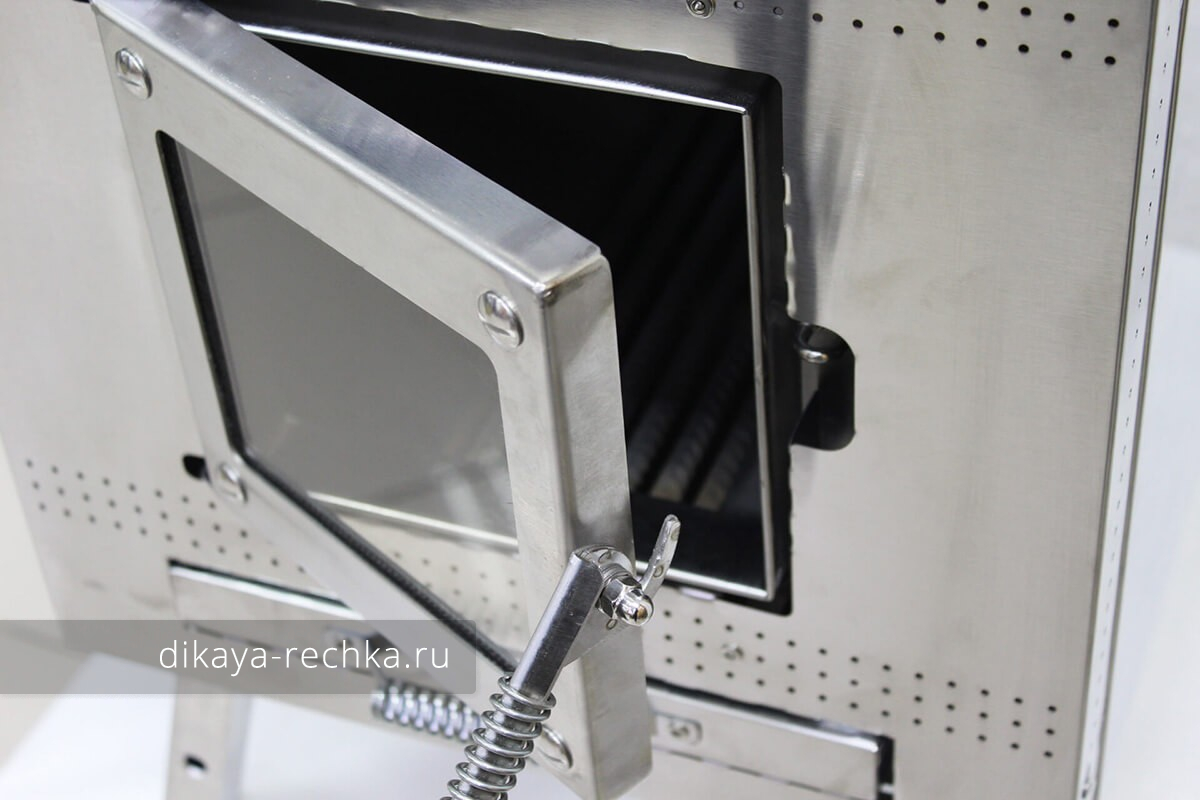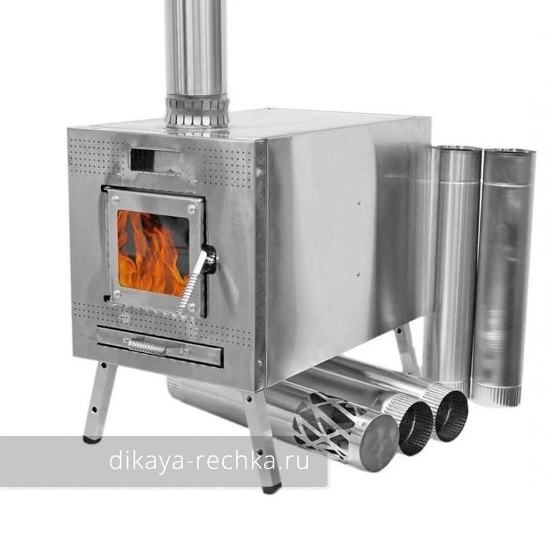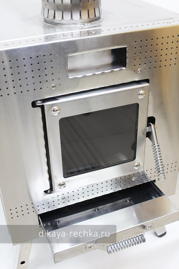Самая большая печь длительного горения в линейке производителя "Берег", подходящая для отопления больших палаток даже при длительном проживании. Ее конструкция отличается наличием выдвижного зольника и колосниковой решетки для удаления золы без необходимости чистки камеры сгорания.