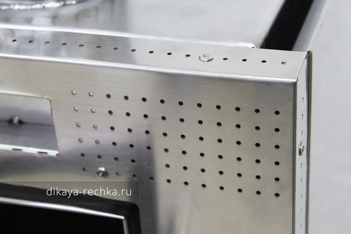 Корпус изготовлен из жаропрочной нержавеющей стали марки AISI 430 толщиной 1 мм. Такая толщина обеспечивает оптимальное соотношение между весом изделия и длительностью эксплуатации без прогорания.
