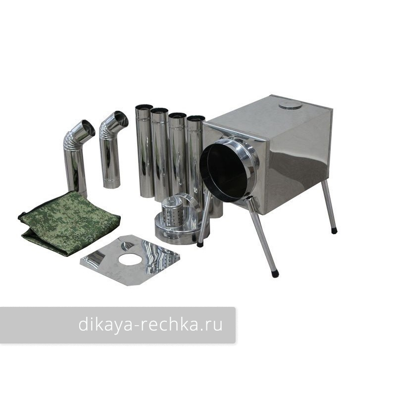 Изготовлена из нержавеющей немагнитной легированной стали марки AISI 304 толщиной 0,5 мм, что позволяет длительно и эффективно использовать печь круглогодично в любых условиях - для обогрева, приготовления пищи, походных бань.
