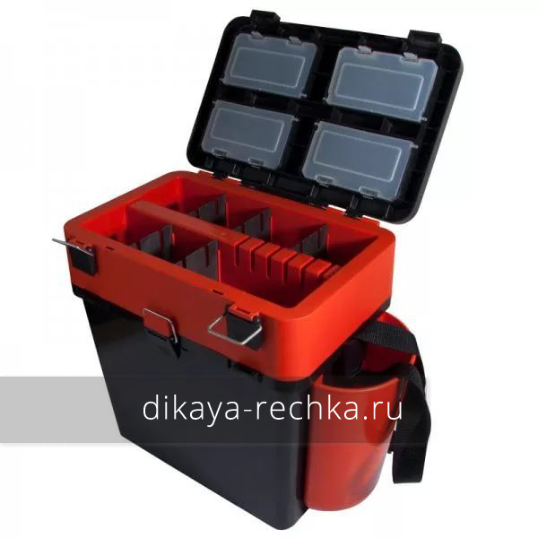 Зимний рыболовный ящик "FishBox" (19 л) оранжевый Helios - функциональный лёгкий ящик из прочного морозостойкого пластика, выдерживающий нагрузку до 130 кг. Крышка имеет мягкое тёплое сидение из пенополиуретана, которое не впитывает влагу и сохраняет тепло. На внутренней стороне откидной крышки размещены 4 прозрачных закрывающихся бокса, в которых достаточно места для блесен, балансиров, мормышек и прочих мелких снастей. Средний отсек имеет две секции, которые при необходимости можно разделить еще, входящими в комплект перегородками. Основной отсек ящика разделен на три части съемными перегородками. В комплекте идут два навесных боковых кармана и регулируемый ремень для переноски из прочной стропы с прорезиненной накладкой. На дне ящика расположены противоскользящие элементы, чтобы обеспечить хорошую устойчивость на льду.